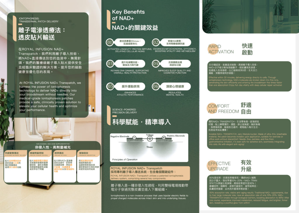 ❶ 與傳統NAD+注射相比,透膚貼的優勢?